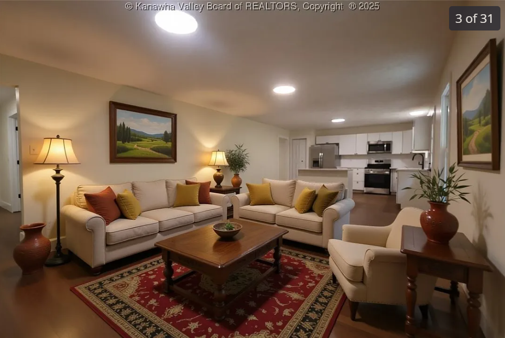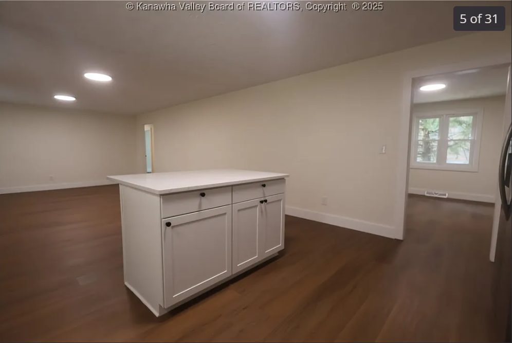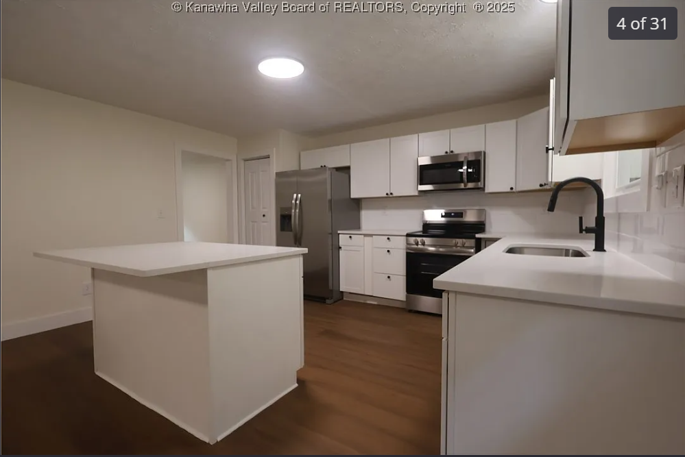 This beautifully updated home features brand-new windows, a warrantied foundation, a new roof, and all new flooring throughout. The modern kitchen shines with new cabinets, quartz countertops, stainless steel appliances, and an open-concept layout centered around a spacious island. A dedicated office with glass French doors provides the perfect work-from-home space. The home offers three bedrooms, two full bathrooms, and the convenience of both upstairs and downstairs laundry areas. The garage includes a workshop space ideal for projects or extra storage. Outside, enjoy a charming swing, a relaxing deck, and a prime location within walking distance to Kanawha City shopping and just minutes from downtown Charleston. Some photos are virtually staged.